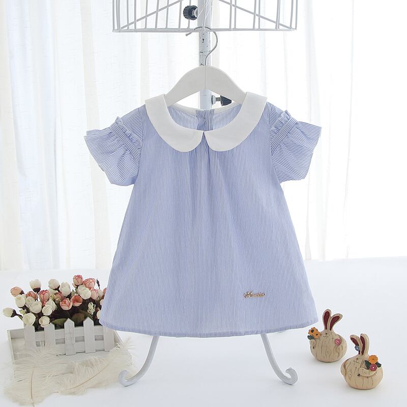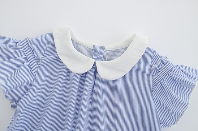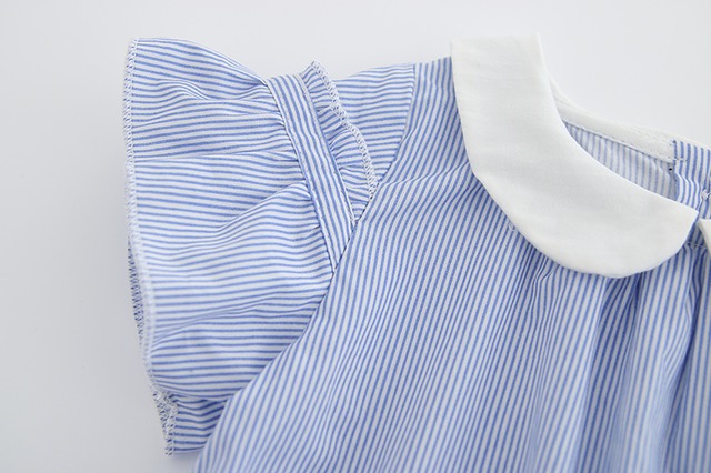 ストライプの半袖チュニックワンピ(ブルー)