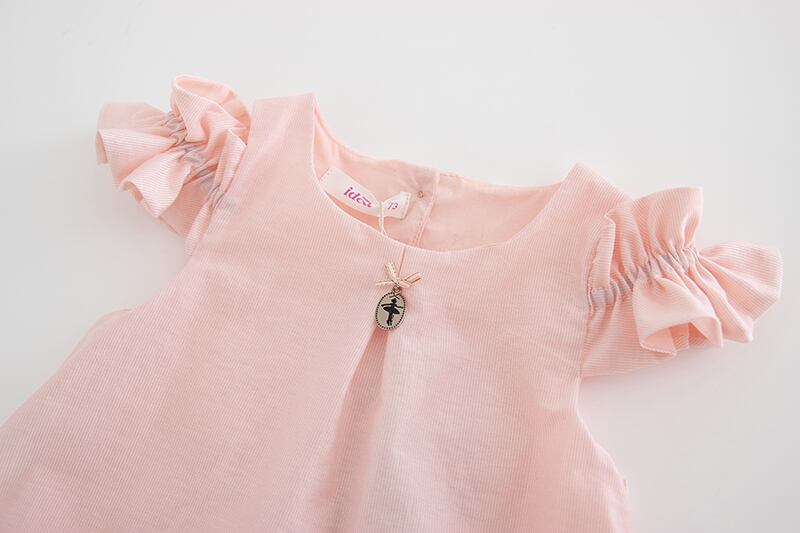 チャームが可愛いカットアウェイショルダーワンピ