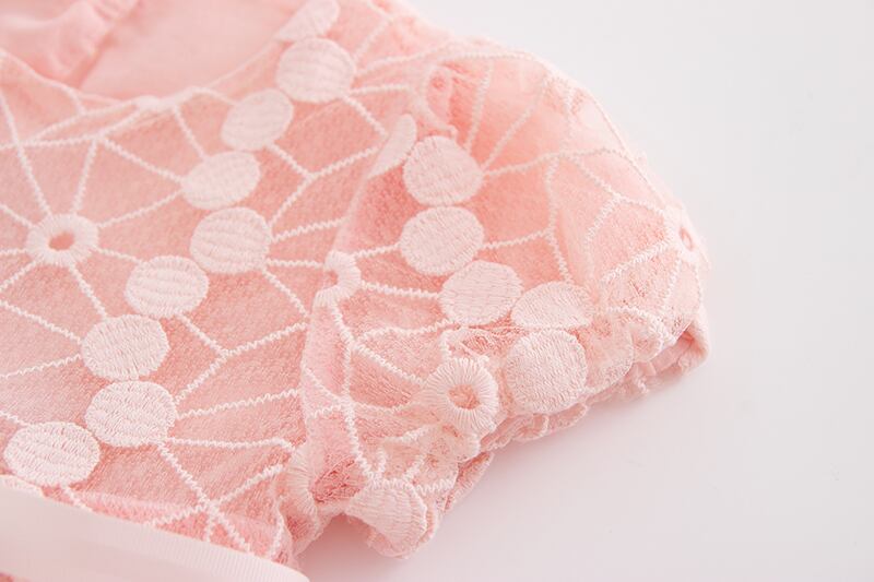 デザインレースの春夏フレンチスリーブワンピ【ピンク)