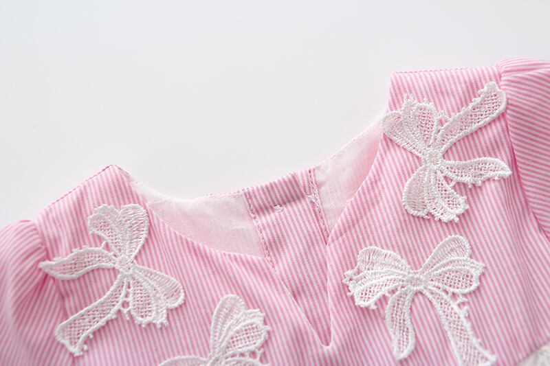 りぼんモチーフのVネックワンピース(ピンク)