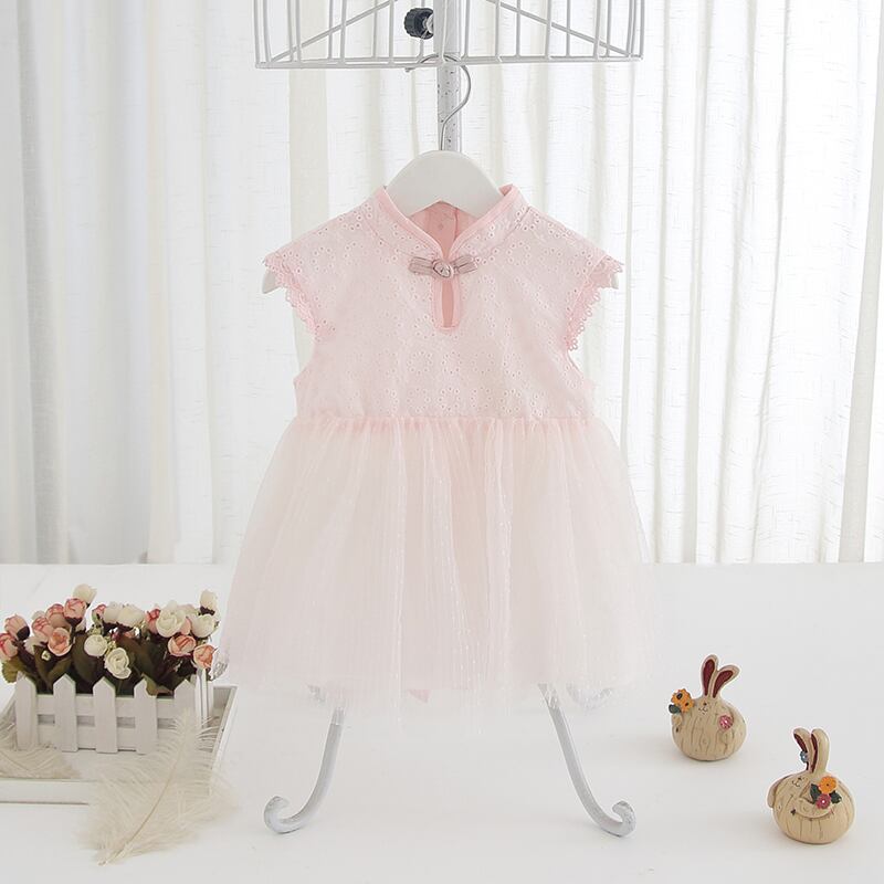 チャイナドレス風ノースリチュニックワンピ(ピンク)