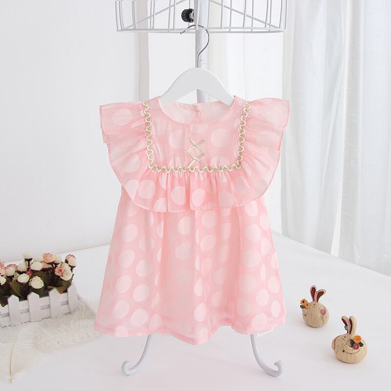 お上品ドットの春夏ノースリーブワンピ(ピンク)