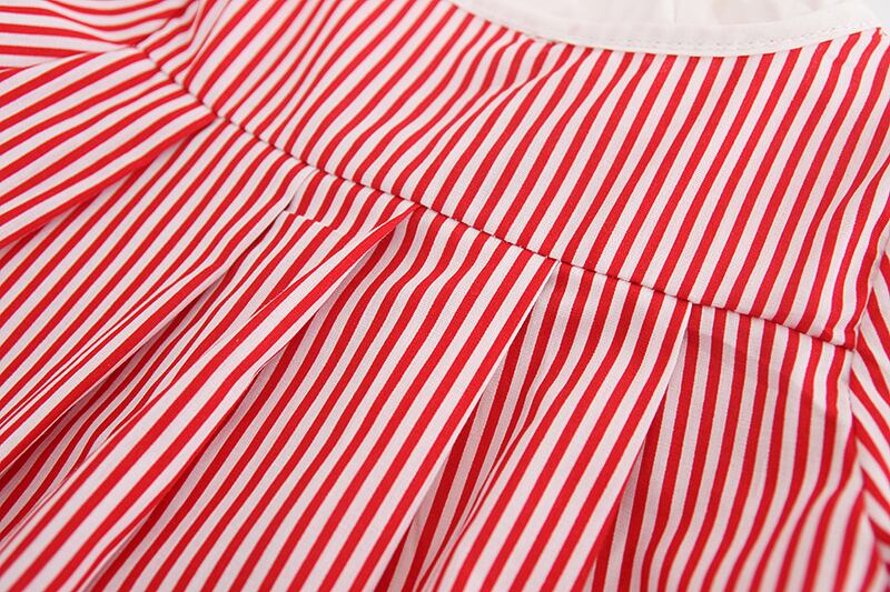 リボン結びのストライプ半袖トップス(レッド)