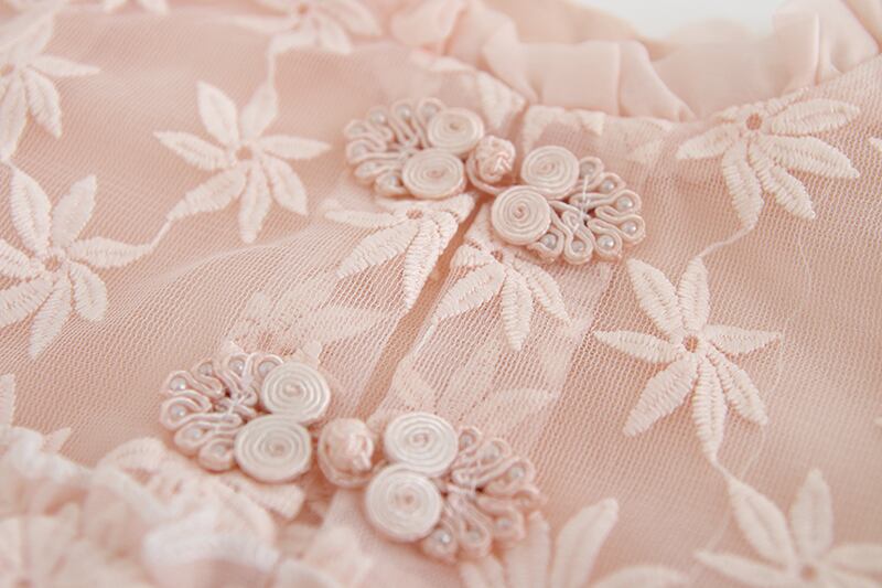 バルーンスリーブのチャイナ風チュニックワンピ(ピンク)
