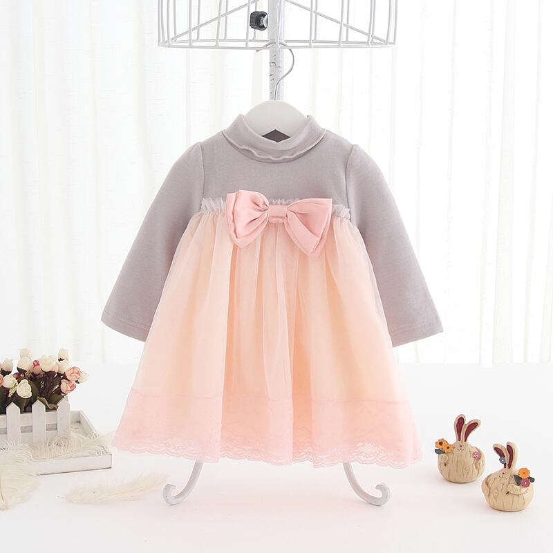 りぼんのハイウェストチュールワンピ(グレー×ピンク)