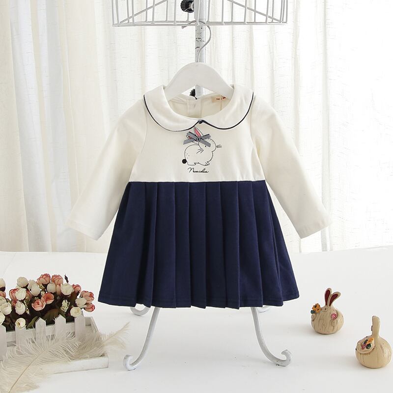 うさぎちゃんの長袖プリーツワンピ(ネイビー)