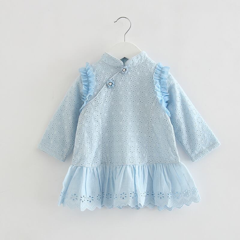 フリルが可愛いチャイナ風ワンピース(ブルー)