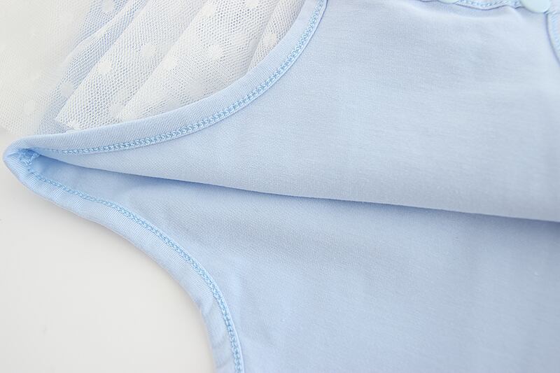 お花飾りの半袖チュールロンパース(ブルー×ホワイト)