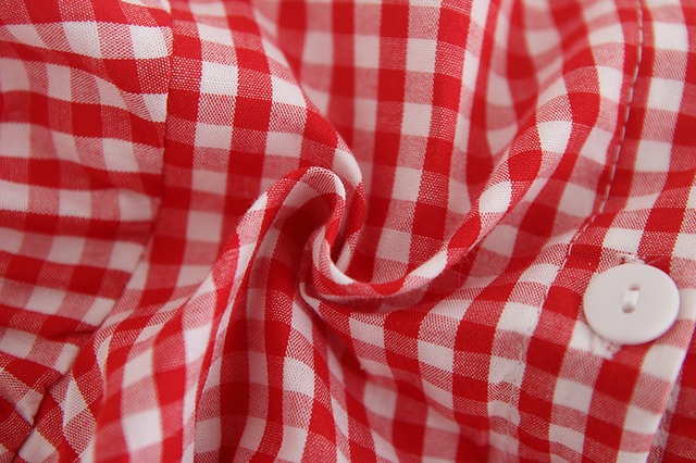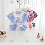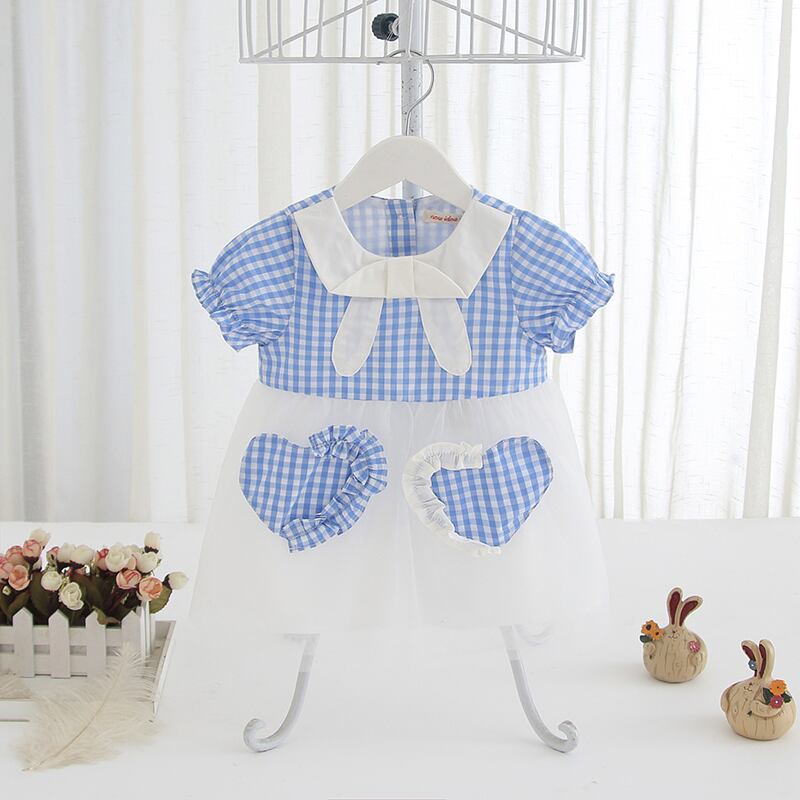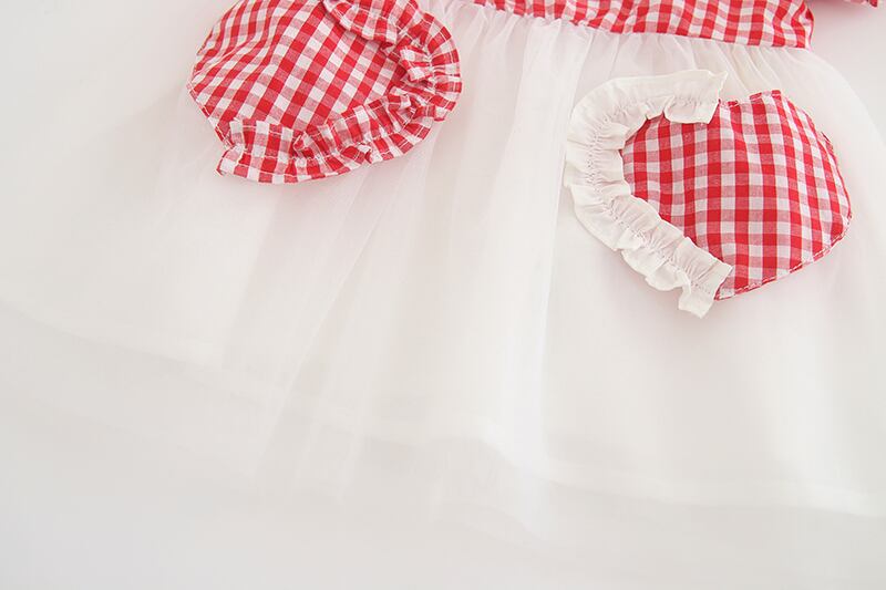 【即納】ハートポケットのギンガムワンピース(ブルー)