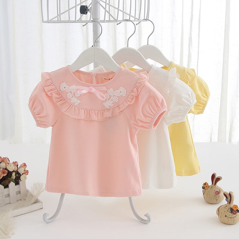 りぼんポイントの半袖ガーリートップス(ピンク)