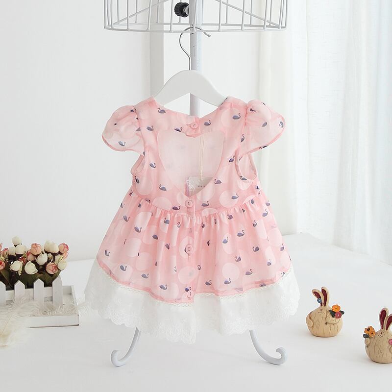 オープンハートのスワン柄ワンピース(ピンク)