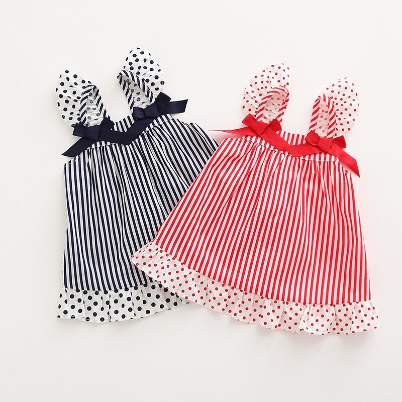 【即納】リボンが可愛いストライプドットワンピ(ネイビー)