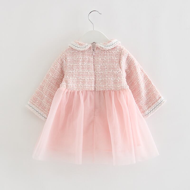 ふんわりチュールの長袖ツイードワンピース