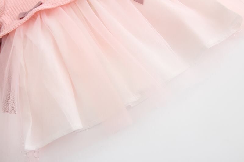 キュートなリボンの長袖ラブリーワンピ(ピンク)