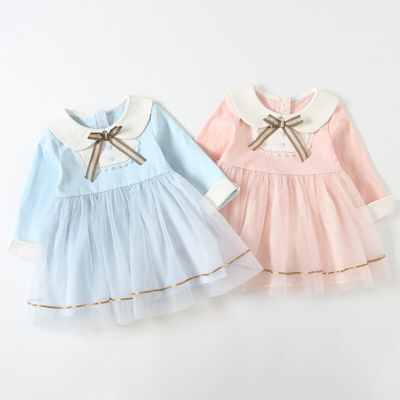 りぼんポイントの襟付きチュールワンピース(ブルー)