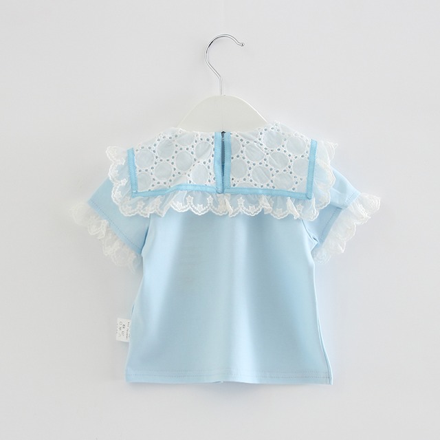 【即納】スクエアカラーの半袖フリルトップス(ブルー)