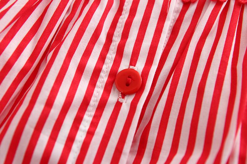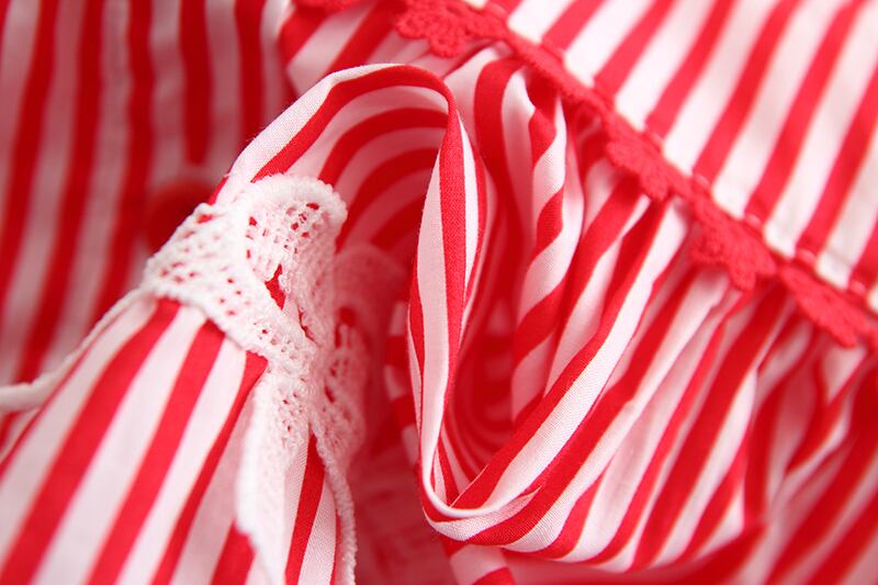 リボンと貝殻のストライプ夏ワンピ(レッド)