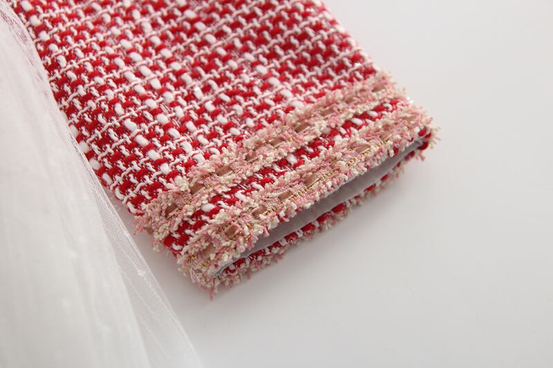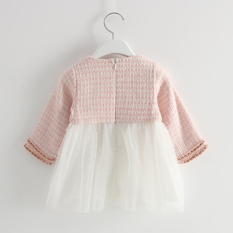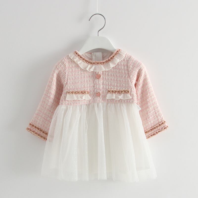 ハートボタンの長袖ツイードワンピ(ピンク)