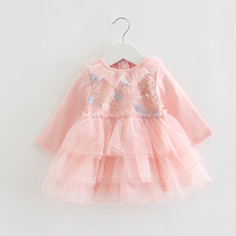 お花モチーフの長袖ティアードワンピ(ピンク)