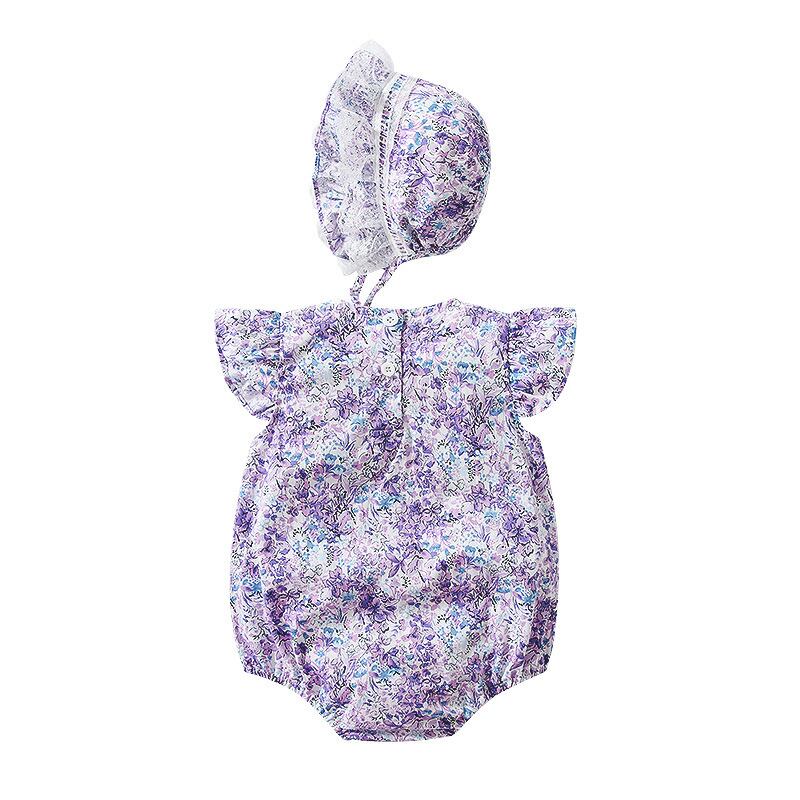 くるみボタンのお花柄ガーリーロンパース