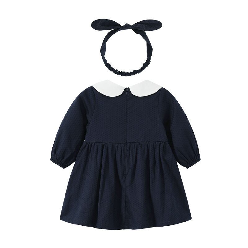 リボンポイントの長袖ロイヤルワンピース(ヘアバンド付き)