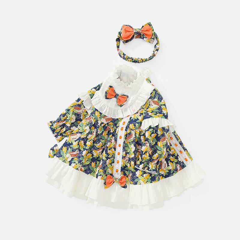 クラシカル花模様のボリュームワンピース(ヘアバンド付き)