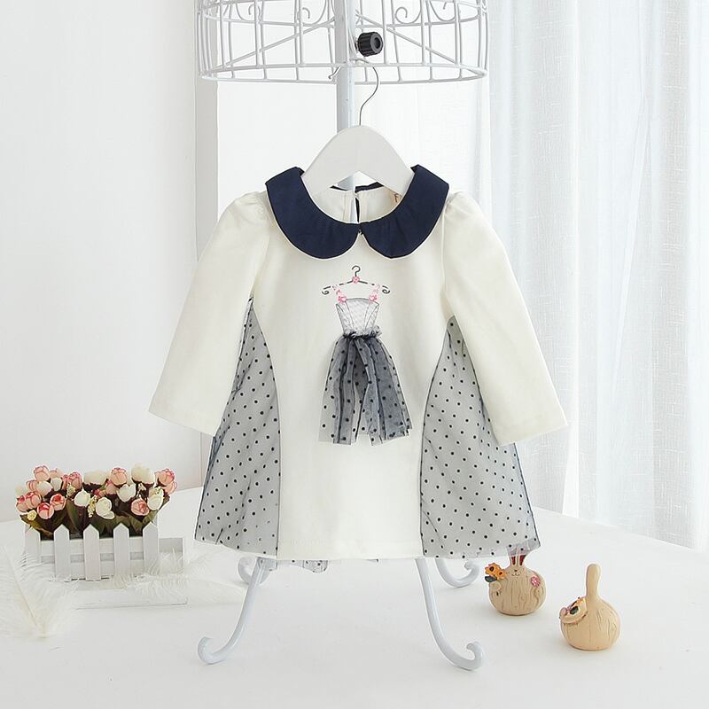 水玉ドレスの長袖チュニックワンピ(ホワイト)