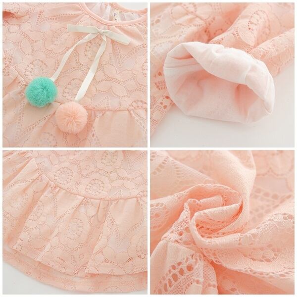 ふんわりレースの長袖チュニックワンピ(ピンク)