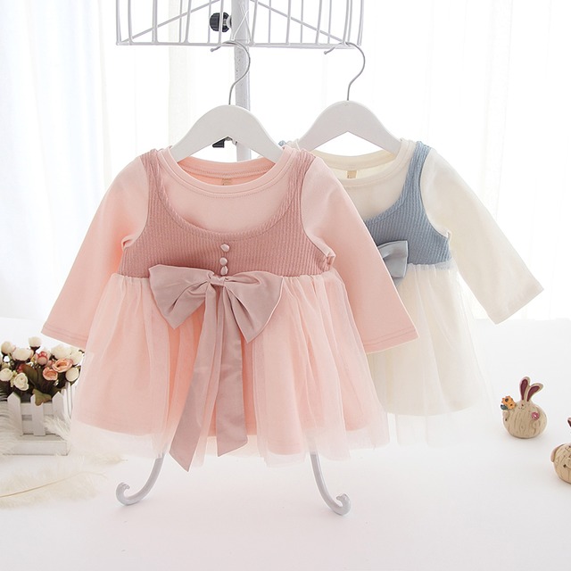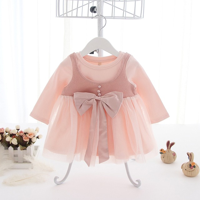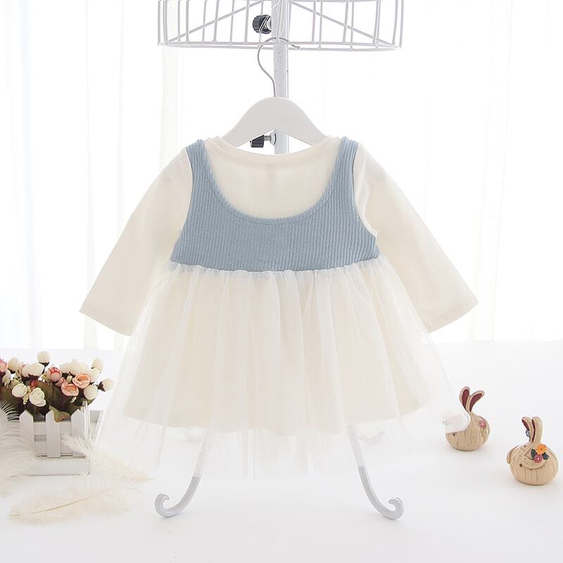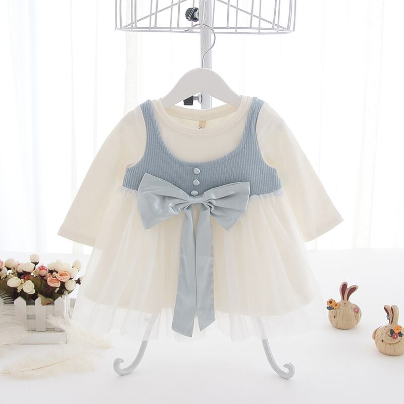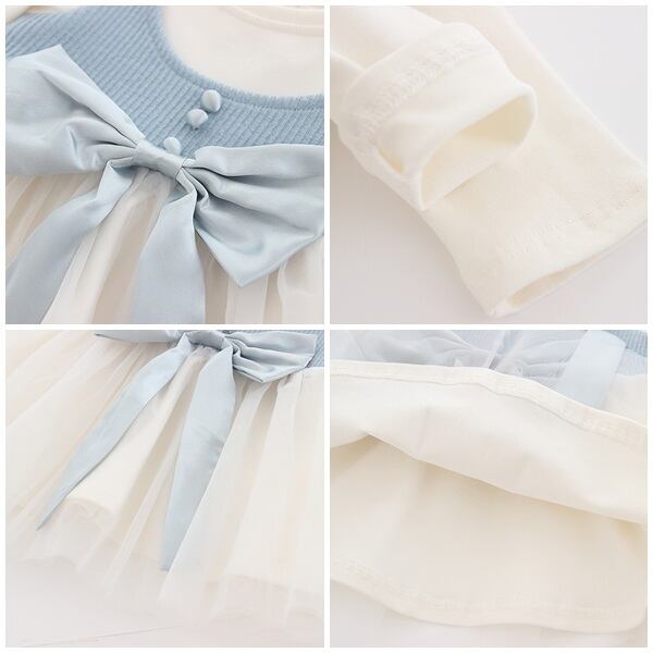 大きなリボンの切り替えチュニックワンピ(ブルー)