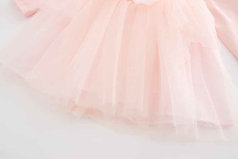 リボンアクセントの長袖チュニックワンピ(ブルー)