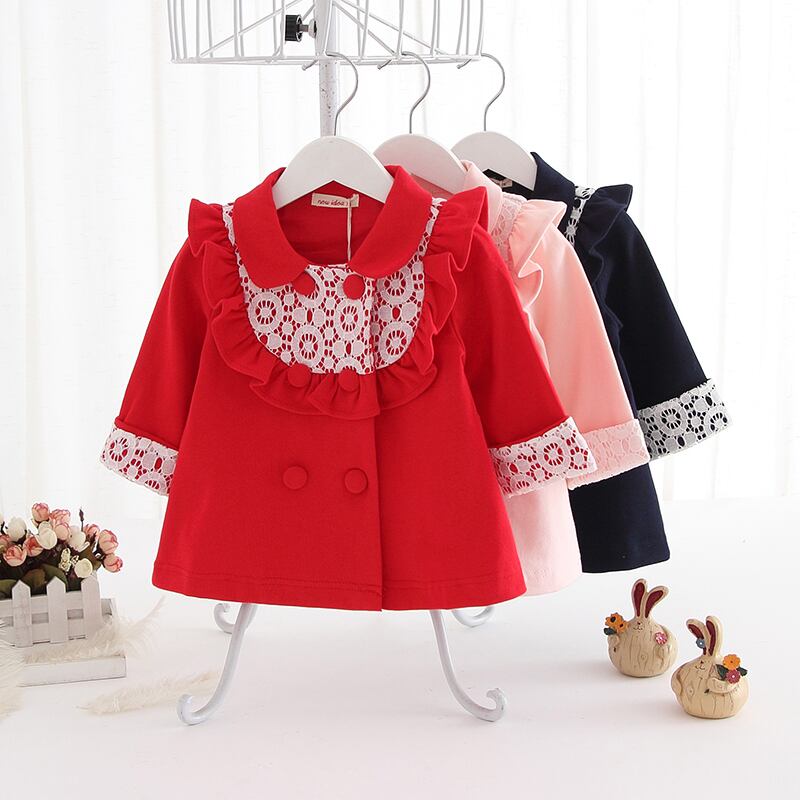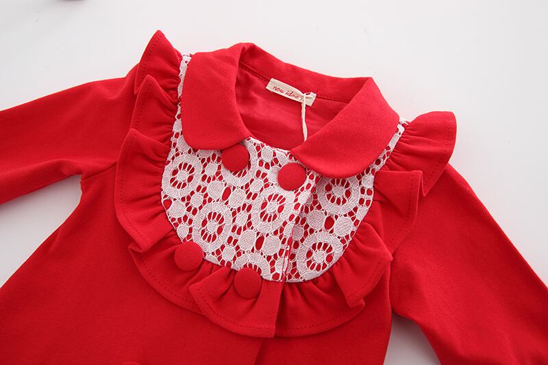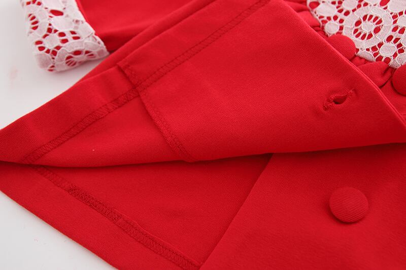 フリルとレースのダブルボタンジャケット(レッド)